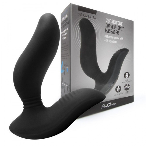 Черный вибромассажер простаты 3,5’’ Curve P-spot Massager. 15 режимов вибрации. Два виброэлемента - в стволе и в основании. Рабочая длина - 10,5 см.