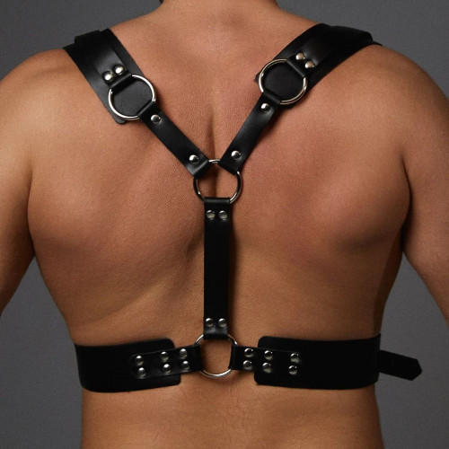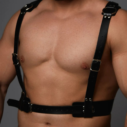 Черная кожаная мужская портупея с регулируемыми ремешками