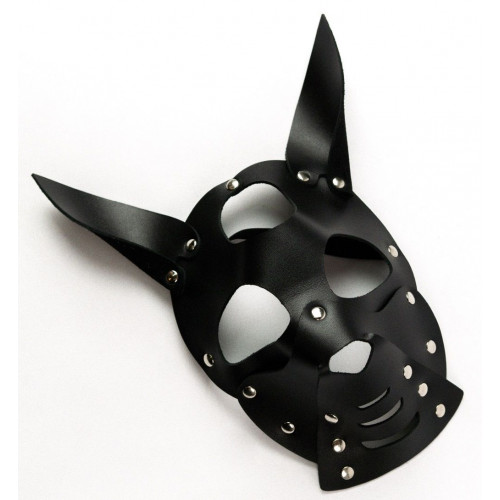 Маска Собака с ушками выполнена из натуральной кожи. Декорирована металлическими заклепками.