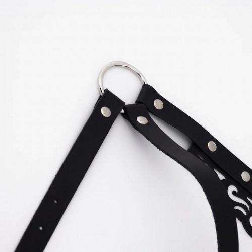 Эта резная портупея изготовлена из черной натуральной кожи и дополнена хромированной фурнитурой высокого качества. Ремешки соединены между собой кольцами и клепками. Благодаря большому диапазону регулировок портупея великолепно будет смотреться практически на любой фигуре. Доставляется в фирменной упаковке в виде брендированной деревянной коробки.