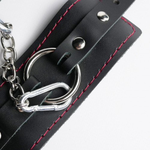 Изделие выполнено из одного слоя натуральной кожи с мягким ремешком и стальным кольцом , которое добавляет конструкции прочности и современный шарм. Декоративная строчка красного цвета по краям подчеркивает стильный дизайн и добавляет изделию игривости. В комплект входит соединительный элемент из кожи с двумя надежными карабинами , которые обеспечивают стабильность и контроль.