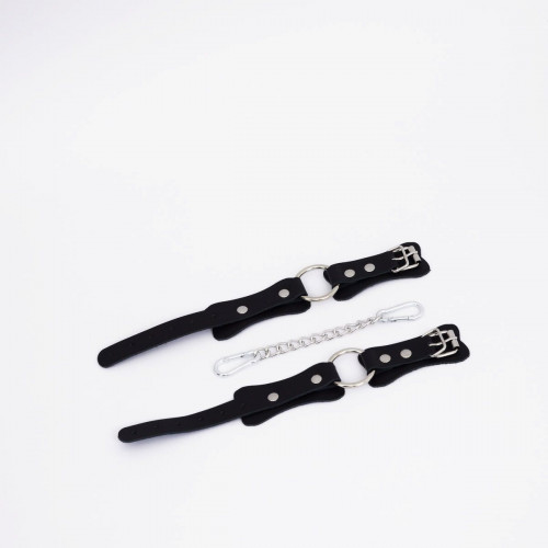 Изделие состоит из двух ремешков из натуральной кожи , соединенных посередине. Их лаконичный дизайн позволяет использовать их не только для фиксации рук или ног в любовных играх, но и как модный аксессуар, который украсит ваш повседневный или вечерний образ. В комплект входит стальное кольцо и соединительный элемент в виде прочной цепочки с двумя надежными карабинами , которые обеспечивают стабильность и контроль.