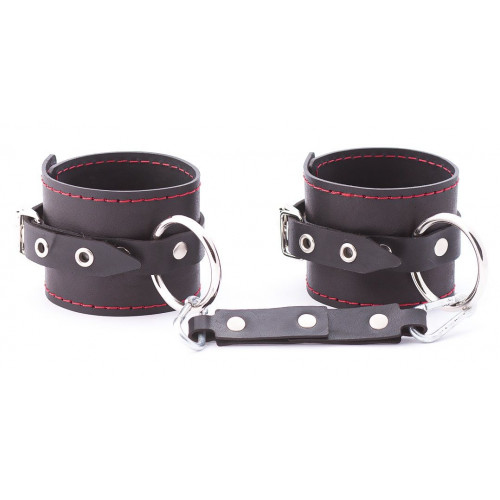 Оригинальный БДСМ-комплект: большая распорка, наручники, оковы. Четыре точки фиксации. Два кольца, четыре карабина. Выполнен из натуральной кожи. Длина распорки - 50 см.