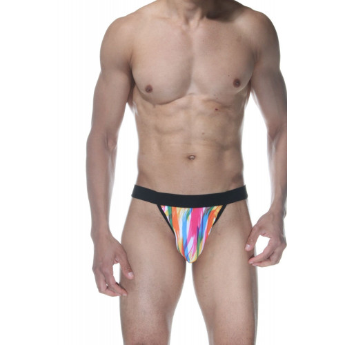 Мужские трусы-стринги с принтом в виде разноцветных мазков кисти