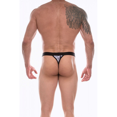 Темно-серые мужские трусы-тонги с принтом.