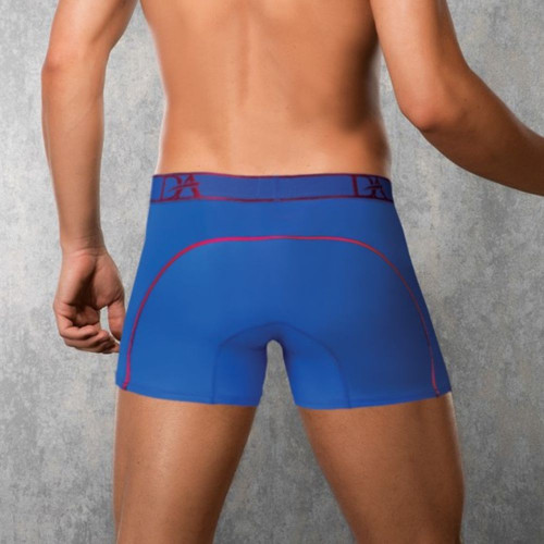 Мужские облегающие трусы-боксеры из тончайшего и легчайшего, почти невесомого шелковистого материала. Передняя панель однослойная, без подкладки, по краям декорирована интригующе-прозрачной сеточкой и ярко-красным кантом. На поясе пришивная резинка с ярко-красным фирменным логотипом бренда «Doreanse».