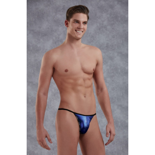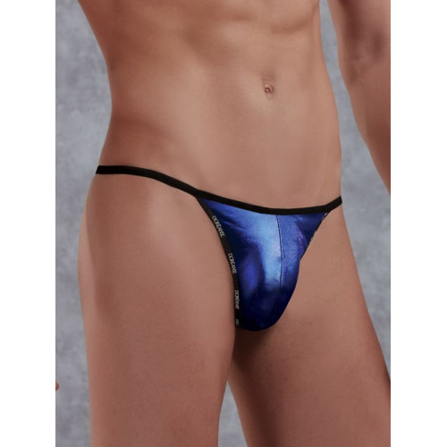Мужские стринги-ниточки роскошного синего цвета с глянцевым блеском от Doreanse.