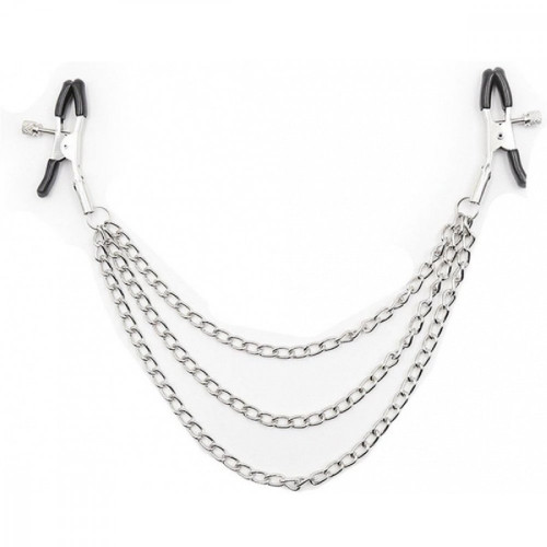 Изящные аксессуары для стимуляции сосков и усиления сексуального возбуждения. Зажимы на соски со специальным резиновым покрытием и с винтиками для регулировки силы давления. Зажимы соединены между собой 3-мя металлическими цепочками. Интимные аксессуары могут использоваться соло или для парных любовных игр.  Материал: металл. До и после использования зажимы рекомендуется обработать очищающим спреем с антимикробным эффектом Clear Toy.