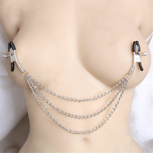 Зажимы на соски с тремя цепочками Three-level серебристый
