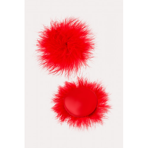 Наклейки на соски многоразовые. Однотонные. Основание выполнено из полиуретана, внутри - слой силиконового геля. Декор: искусственная кожа, пух. Размер основания: 5 см. Наклеивать на чистую кожу без следов косметических средств. Снимать осторожно. После использования внутреннюю сторону промыть теплой водой. Хранить, изолировав клейкий слой пленкой или приклеив к стеклянной поверхности (зеркалу). Не использовать при гиперчувствительности к силикону, нарушениях пигментации или повреждениях кожи груди.