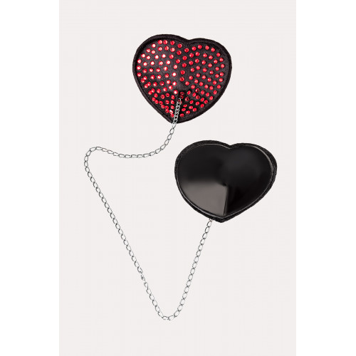 Наклейки на соски многоразовые. Конус выполнен из полиуретана, внутри - слой силиконового геля. Декор: сатин со стразами и серебристая металлическая цепочка. Размер основания: 5 см. Длина цепочки: 28 см. Наклеивать на чистую кожу без следов косметических средств. Снимать осторожно. После использования внутреннюю сторону промыть теплой водой. Хранить, изолировав клейкий слой пленкой или приклеив к стеклянной поверхности (зеркалу). Не использовать при гиперчувствительности к силикону, нарушениях пигментации или повреждениях кожи груди.