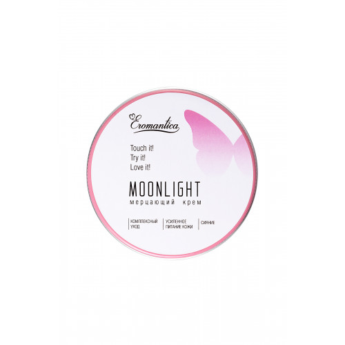 Коллекция уходовой косметики Eromantica Care — твоя лучшая бьюти-подруга. Мерцающий крем для тела Eromantica Moonlight интенсивно насыщает кожу витаминами и микроэлементами, придавая ей нежность и сияние. Смесь натуральных масел оливы, миндаля и рапса глубоко питает кожу, делает ее эластичной и подтянутой. Масла кокоса и ши оказывают регенерирующее и антиоксидантное действие на клеточном уровне, поддерживают баланс увлажненности кожи и ухаживают за ней на протяжении всего дня. Как применять: наноси на кожу лица и тела, чтобы подчеркнуть их естественное сияние, или используй как хайлайтер.