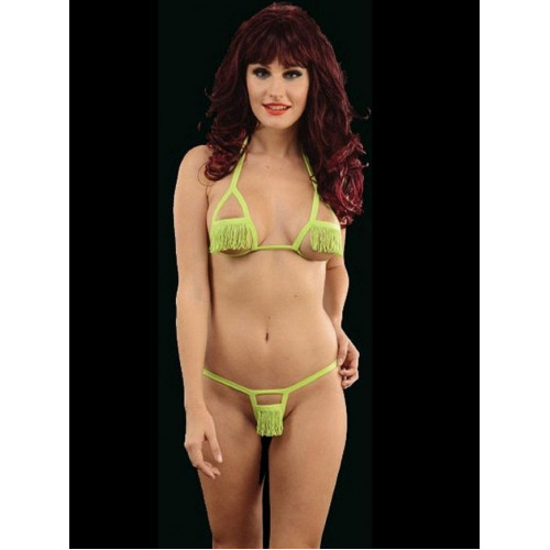 Салатовый комплект с бахромой: лиф и трусики-стринги. В комплекте: лиф и трусики-стринги.