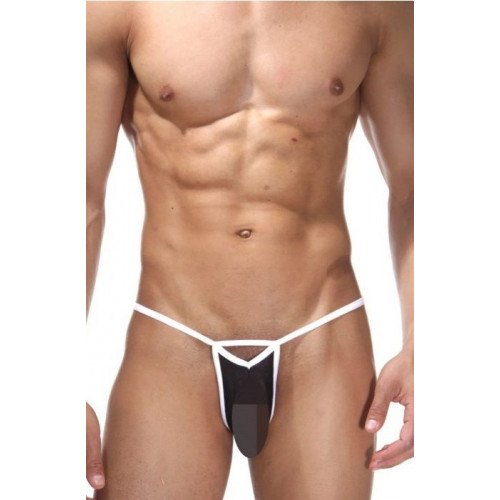 Мужские трусы на очень тоненьких белых резинках, с пикантным вырезом-треугольником, и черной тканью спереди.