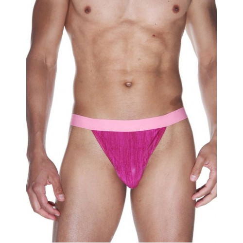 Гладкие блестящие ярко-розовые тонги на широком поясе.