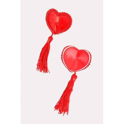 Наклейки на соски многоразовые. Однотонные. Конус выполнен из полиуретана, внутри — слой силиконового геля. Декор: сатин, объемная тесьма и кисточки. Размер основания: 5 см. Длина кисти: 11 см.Наклеивать на чистую кожу без следов косметических средств. Снимать осторожно. После использования внутреннюю сторону промыть теплой водой. Хранить, изолировав клейкий слой пленкой или приклеив к стеклянной поверхности (зеркалу). Не использовать при гиперчувствительности к силикону, нарушениях пигментации или повреждениях кожи груди.