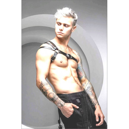 Визуально подчеркивающая мужскую силу и решительность кожаная портупея Yanus заигрывает с любым, кто осмелиться на нее взглянуть. Элегантное скрепление прочных ремней будет служить напоминанием о восхищающей силе творца своей жизни. Надеть с белой рубашкой или удивить её обнажив торс? Портупея уверено обхватывает торс и складно очерчивает рельефы мужского тела. Портупея Янус - правильный выбор уверенного в себе и темпераментного мужчины. Регулируемые ремешки обеспечат идеальную посадку практически по любой фигуре. Ширина ремешков 3 см, 2.5 см и 1,5 см. Портупея изготовлена из натуральной кожи. Размер L/XL. Цвет черный.
