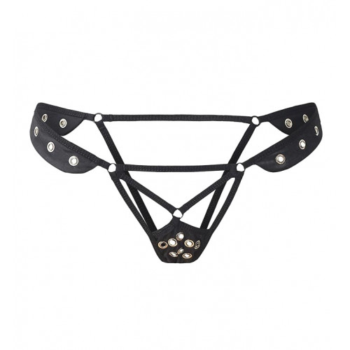 Трусики с доступом из черных лент с металлическими заклепками и провокационными вырезами. Легкая БДСМ-нотка добавляет модели пикантности. Поиграй с ним в подчинение, заставь поклоняться своей сексуальности. Впрочем, выбора у него не будет – женщине в белье от коллекции Easytolove невозможно отказать. Цвет: черный. Размер: 42-44 (S/M).