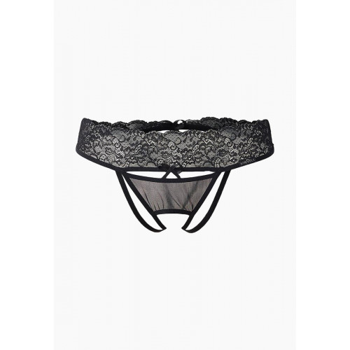 Невесомые кружевные трусики с доступом. Передняя часть модели строга и закрыта, но стоит повернуться спиной, как сдержанность сменяется откровенной провокацией. Забудь о скучном вечернем сексе! В этих кокетливых трусиках им можно заниматься где и когда угодно. Не раздеваясь и не снимая белья. Сведи его с ума и заставь думать о тебе непрерывно.