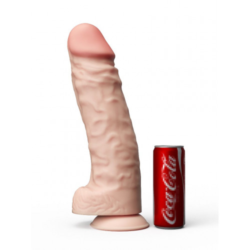 Огромный реалистичный фаллоимитатор телесного цвета на присоске. Имеет форму члена с мошонкой и ярко-выраженной розовой головкой. Необычайно приятный, упругий, рельефный, выполненный из кибер-кожи, не имеет швов. Имеет ребристую поверхность для дополнительной стимуляции. Рабочая длина - 33 см.