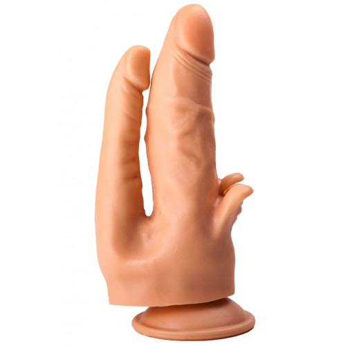 Фаллоимитатор на присоске для тройной стимуляции - 19,5 см.