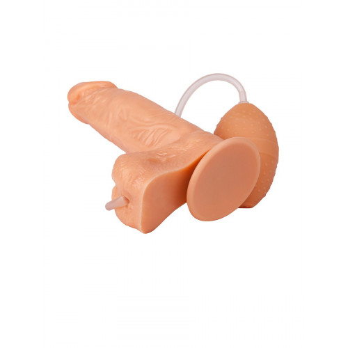 Фаллоимитатор-реалистик с грушей для имитации эякуляции - 16,5 см.