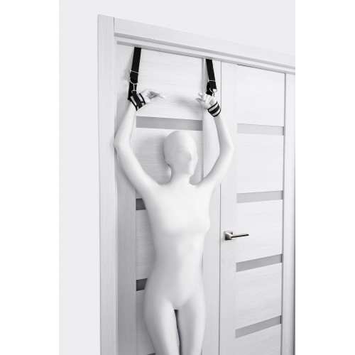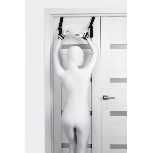 Оставьте наручники и кровать в прошлом веке, пора играть по-взрослому. Фиксаторы для рук на дверь для смелых и терпеливых. Больше позиций для получения удовольствия без силовых затрат! Пластиковые цилиндры фиксируются за дверью, наручники крепятся на запястьях с помощью застежки велкро. Размер легко регулируется ремешками и подойдет для запястий любого размера. Серебряный цвет с черными ремешками смотрится элегантно. Внутренняя часть наручников мягкая и не доставляет дискомфорта во время использования. Фиксаторы с помощью двери дают вам больше свободы для реализации фантазий. Не нужно напрягаться, чтобы удерживать руки вверху, не нужно контролировать своего партнера, если хочется удержать его стоя. Эта оригинальная форма бандажа выведет вас на новый уровень наслаждения с доверием. Материал: полиэстер, полипропилен, ABS-пластик. Общая длина наручников: 23 см. Длина ремней: 26 см. Ширина наручников: 7 см. Диаметр цилиндра: 2,5 см.