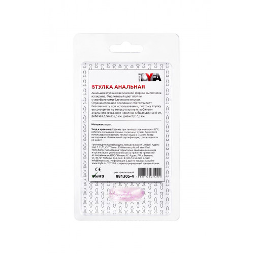 Анальная втулка классической формы выполнена из акрила. Прозрачный материал с золотистыми блестками внутри. Ограничительное основание обеспечивает безопасность при использовании, поэтому втулку высоко ценят не только опытные любители анального секса, но и новички. Рабочая длина - 6,5 см.