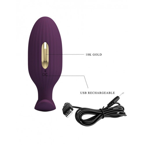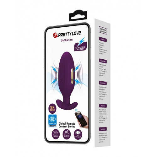 Фиолетовый перезаряжаемый анальный плаг с электростимуляцией и вибрацией из шелковистого силикона с возможностью управления через приложение на смартфоне, с 12 режимами вибрации, 3 режимами E-Stim. Устройство является водонепроницаемым (защита от брызг).