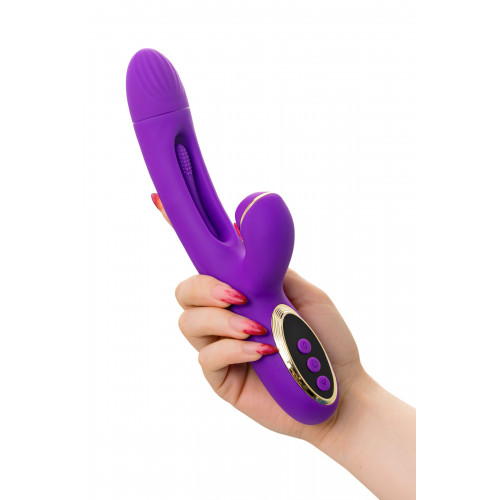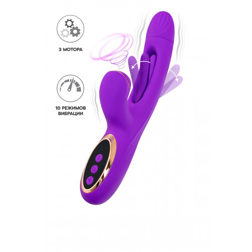 Тройное удовольствие гарантирует оргазм с максимальным уровнем экстаза. Управляйте своим наслаждением с легкостью! Три кнопки на основании вибратора контролируют каждый аспект удовольствия. Серединная кнопка включает устройство и переключает режимы основного вибратора. Кнопки ниже управляют режимами клиторального отростка. Верхняя кнопка изменяет режимы работы язычка.