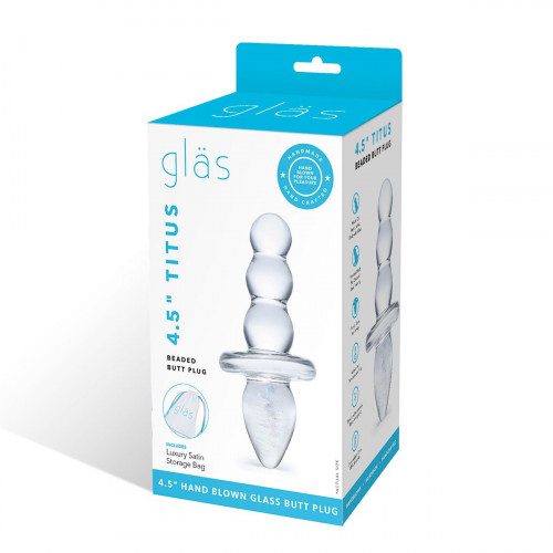Ощущение гладкости стекла и его кристально прозрачный вид соблазнят тех, кто ищет шикарный предмет для удовольствия. Каждая игрушка в линейке Gl?s подобна произведению искусства, доведенному до совершенства. Эта забавная анальная пробка-ёлочка из прозрачных стеклянных бусин идеально подходит для расширения прямой кишки, одиночной мастурбации и парных игр. Анальная пробка Titus с бусинами имеет два пригодных для использования конца, которые идеально подходят для различных видов стимуляции. На одном конце есть три последовательно увеличивающихся к основанию бусины, позволяющие увеличивать интенсивность ощущений для более глубокой стимуляции. Другой конец украшен переливающейся спиралькой внутри. При этом любой конец работает как ручка для легкого маневрирования. Изготовленная из высокопрочного стекла ручной работы, игрушка рассчитана на длительный срок службы. Она идеально подходит для мужчин и женщин. Ёлочка Titus гипоаллергенна, чрезвычайно гигиенична и проста в уходе, достаточно просто промыть водой с мылом. Нагрейте или охладите эту игрушку в воде нужной температуры, и она сохранит тепло и холод для усиленной стимуляции. Используйте с вашим любимым лубрикантом: эта игрушка совместима с любыми видами интимных средств. Длина ёлочки - 5,5 см, минимальный диаметр - 1,9 см, максимальный - 2,4 см.