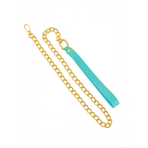 Голубой кожаный поводок с карабином для ошеи?ника - 80 см.