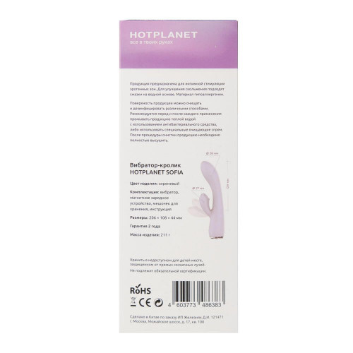 Вибратор-кролик с клиторальным стимулятором, кончик которого сделан в виде милого зверька с носиком и ушками, на которые передаются вибрации. Hot Planet Sofia сделан из гладкого шелковистого силикона. Очень гибкие вагинальный и клиторальный отростки позволяют индивидуально подстроить игрушку. Округлая головка способствует комфортному проникновению и обеспечивает яркую стимуляцию.