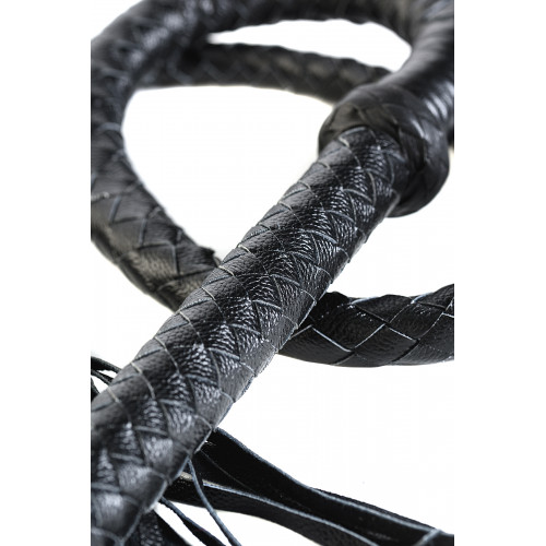 Это кнут - настоящее произведение искусства. Изумительное плетение, натуральная кожа, жёсткая рукоятка 30 см, кожаные хлопушки на конце и длина - 175 см! Выглядит такой атрибут очень впечатляюще, но порка им требует особого умения, поскольку кнут способен наносить очень сильные удары. Предназначен для точечного воздействия, накатов, охватов.