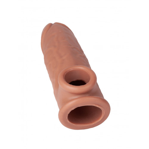 Коричневая удлиняющая насадка с отверстием для мошонки - 18 5 см.
