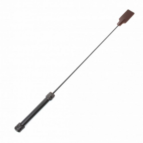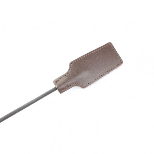 Рукоятка стека выполнена из натуральной кожи коричневого цвета с плетением, на конце девайса расположен кожаный шлепок. Гибкий и надежный стек доставит максимальное удовольствие партнерам от БДСМ игры. Размеры хлопушки - 8 х 4 см.
