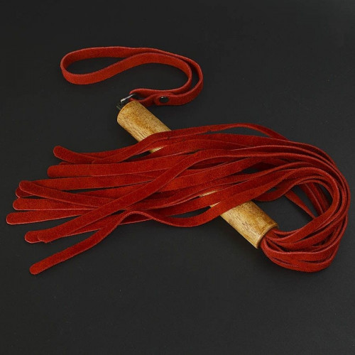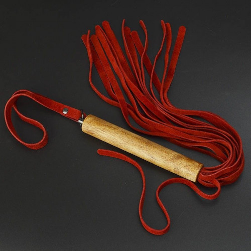 Красная велюровая плеть с деревянной рукоятью - 44 см.