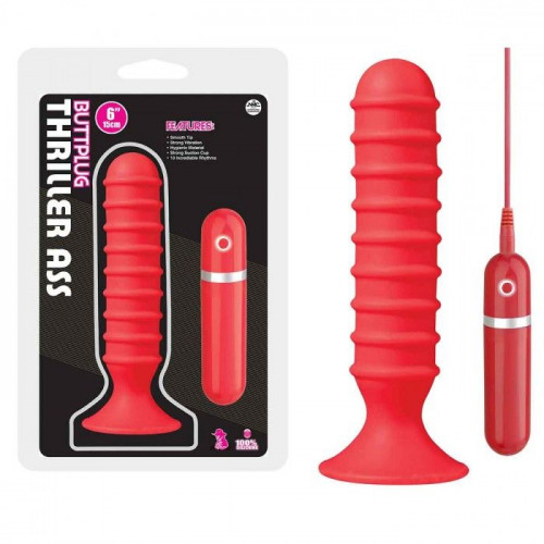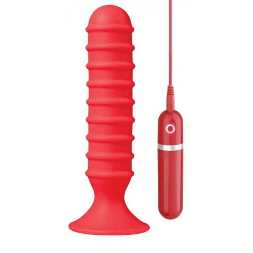 Красный плаг для анальной стимуляции из силикона. Имеет ограничительное основание - сильную присоску. Стимулятор покрыт объемными кольцами для более ярких ощущений при использовании. Плаг имеет 10 режимов работы, которые управляются выносным пультом. Рабочая длина - 14 см.