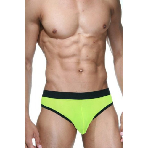 Ярко-зеленые мужские трусы-тонги на широкой черной резинке.