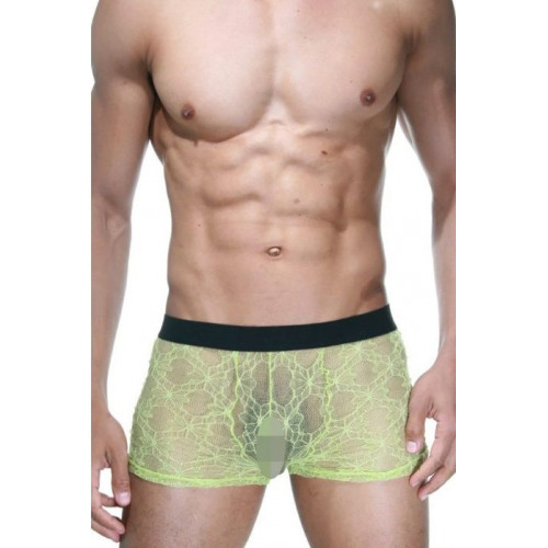 Мужские боксеры из полупрозрачного кружева с крупным плетением, на широкой черной резинке.