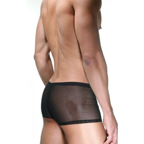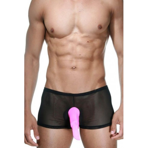 Черные полупрозрачные боксеры для мужчин, с розовой плотной вставкой в области гениталий.