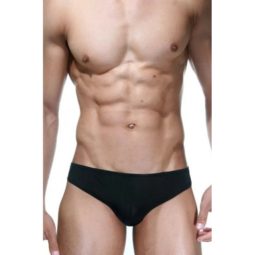 Мужские трусы-слипы из хорошо тянущейся черной ткани. Сзади на ягодицах белая кружевная ткань.