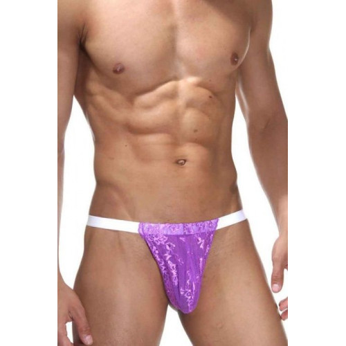 Трусы для мужчин из кружевной ткани яркого цвета, средней толщины, на хорошо тянущейся резинке. Ягодицы полностью открыты.