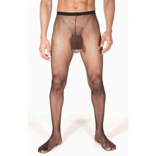 Мужские колготы в среднего размера сеточку. На колготах есть спереди вырезы на интимной зоне. Ткань, из которой изготовлены колготы, отлично тянется и не будет доставлять никакого дискомфорта.