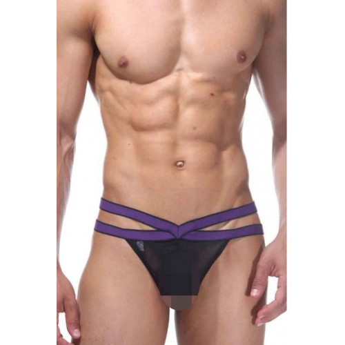 Мужские трусы-стринги из полупрозрачной ткани с открытыми гениталиями. Трусы на двойной широкой резинке.