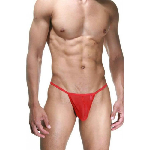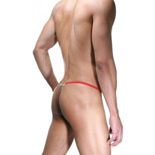 Мужские трусы-стринги, из полупрозрачной ткани. Сзади серебристый декор.
