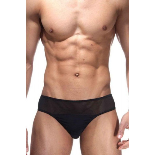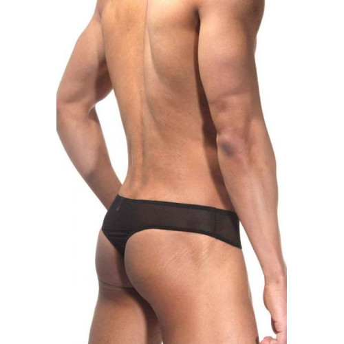 Тонги для мужчин с низкой посадкой, из эластичной полупрозрачной черной ткани.