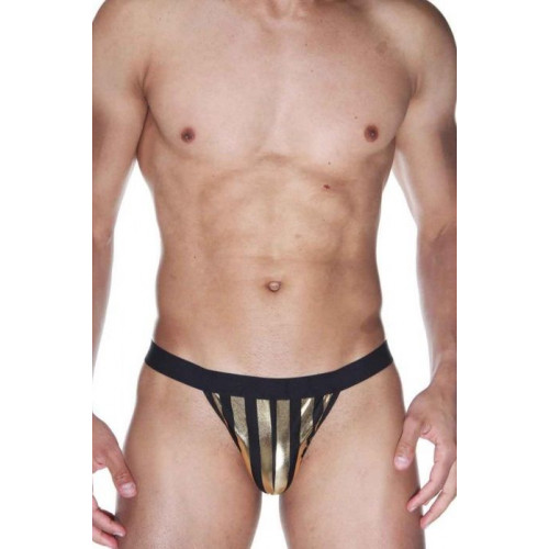 Мужские трусы-тонги из эластичной ткани в полоску.