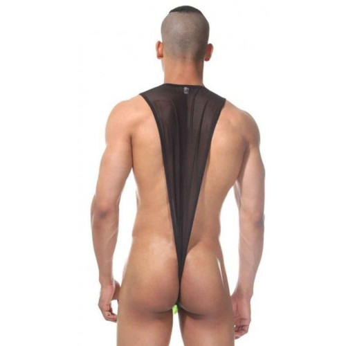 Оригинальное боди для мужчин, в котором скомбинирована верхняя полупрозрачная с контрастным гульфиком.