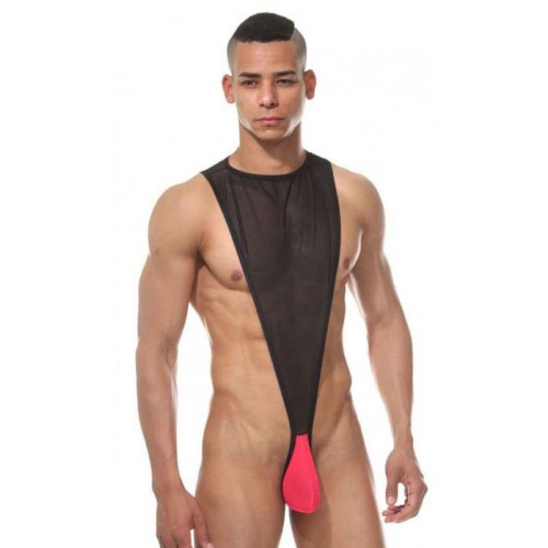 Оригинальное боди для мужчин, в котором скомбинирована верхняя полупрозрачная с контрастным гульфиком.